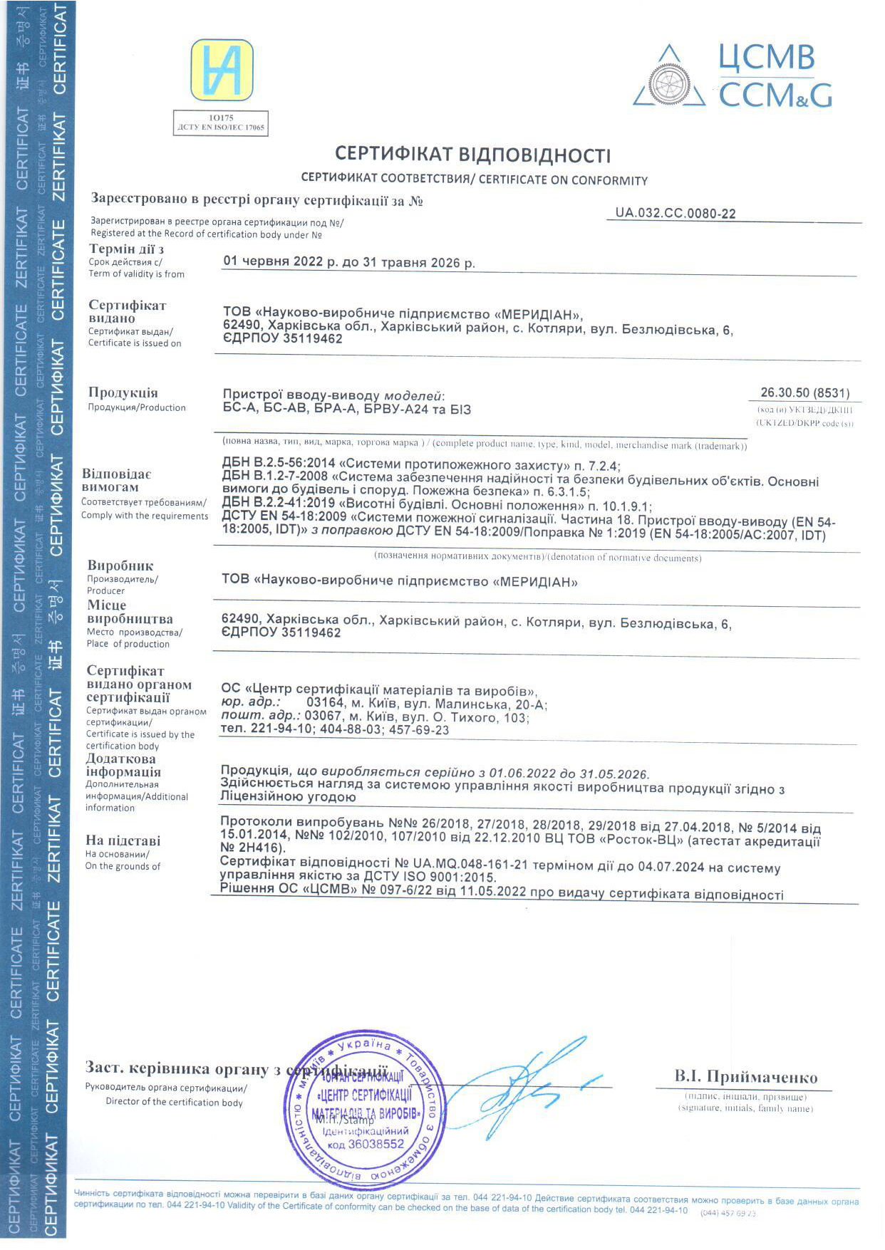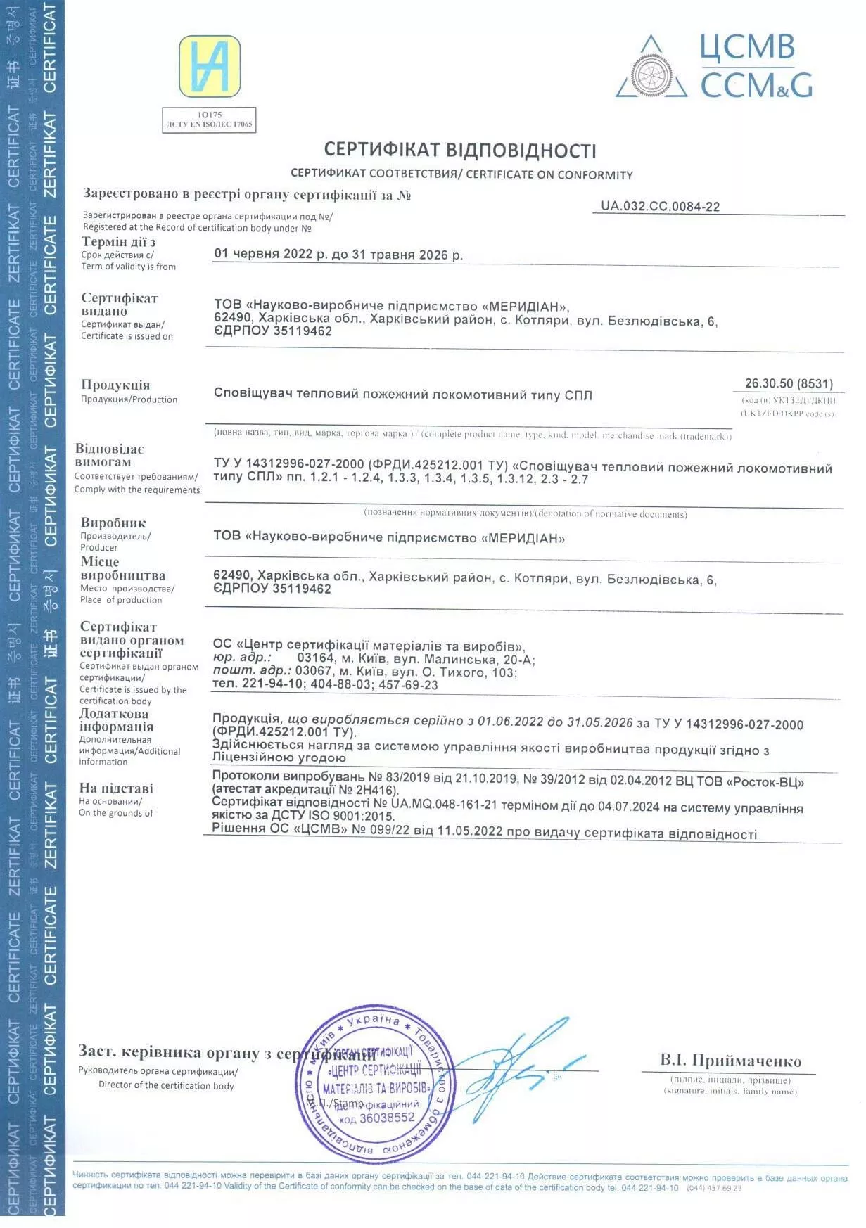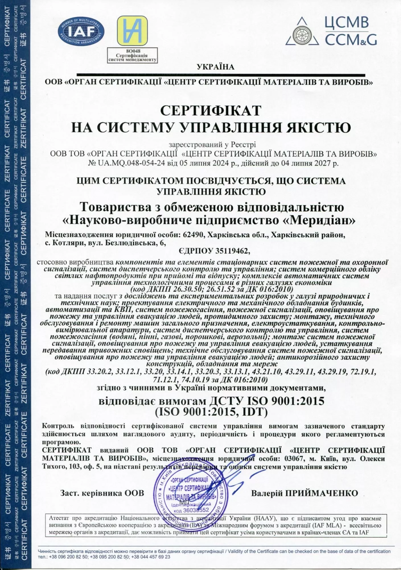 На систему управління якістю ISO 9001:2015 дійсний до 04.07.2027