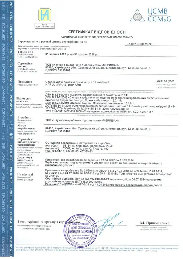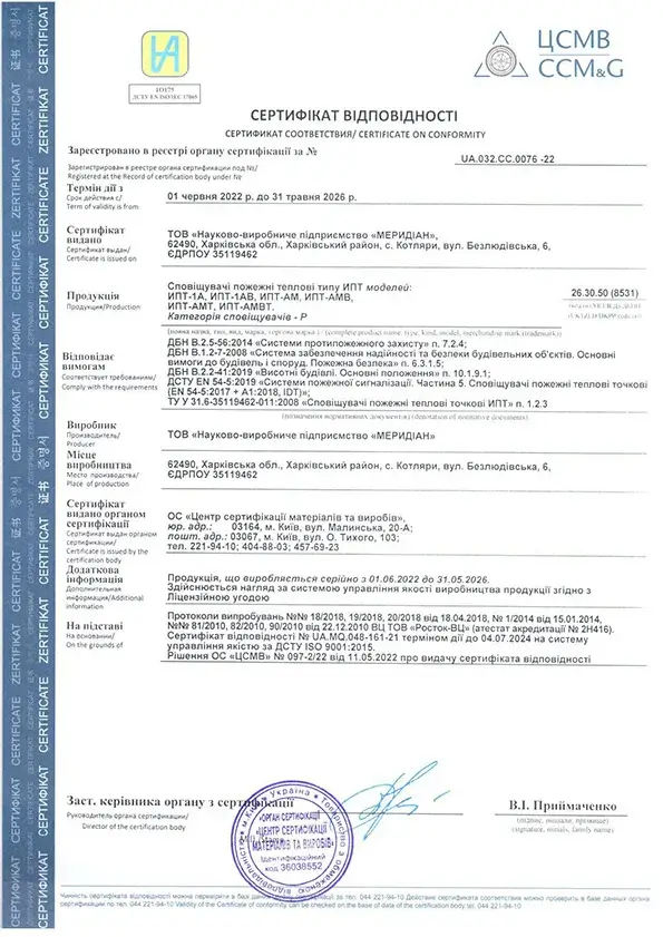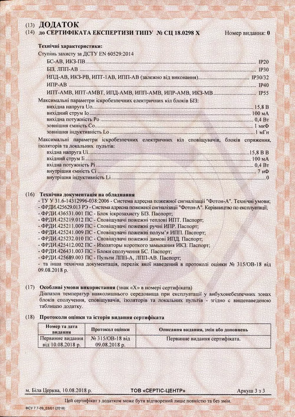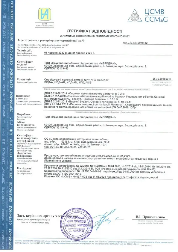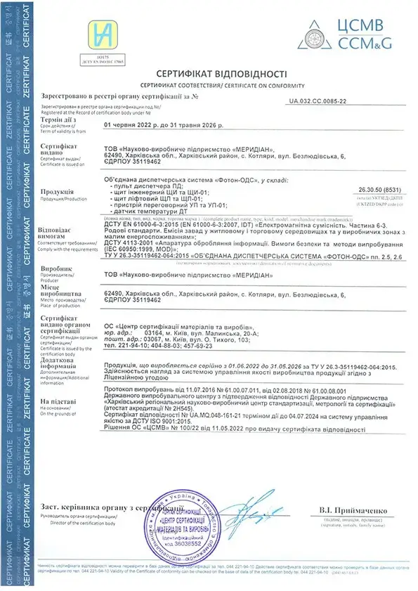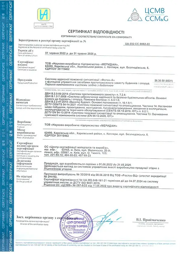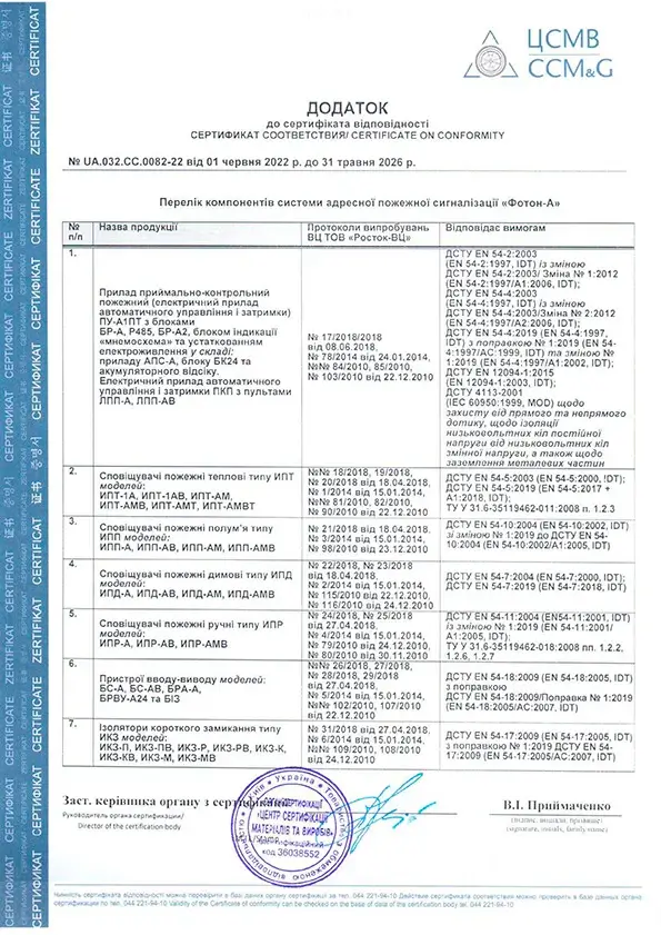 Додаток до сертифікату на систему "Фотон-А" дійсний до 31.05.2026
