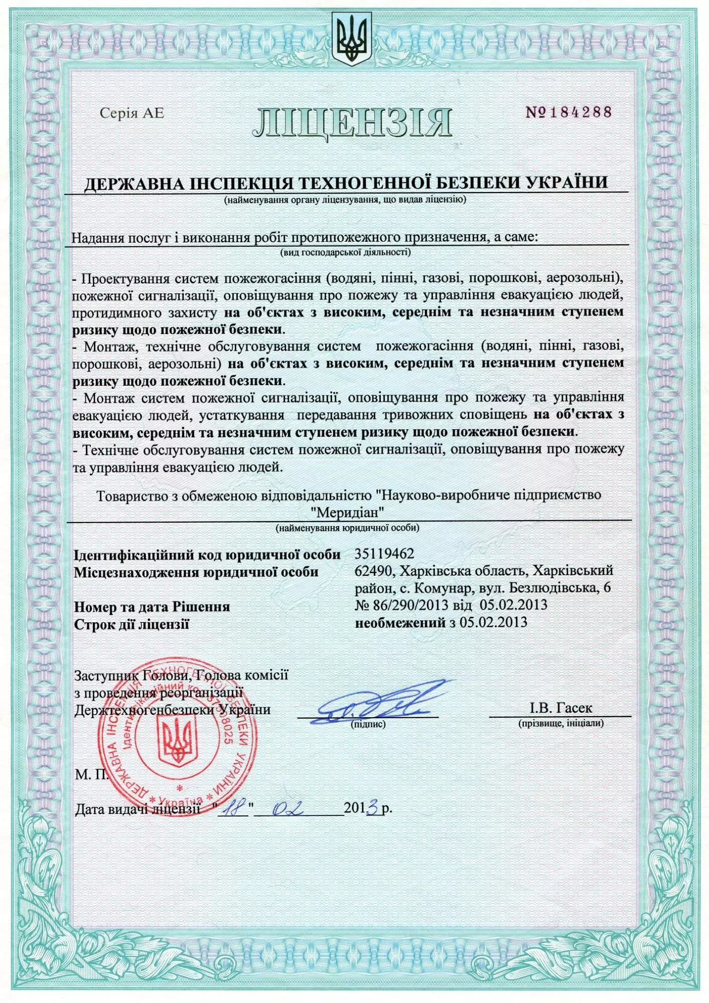 Ліцензія на надання послуг і виконання робіт протипожежного призначення